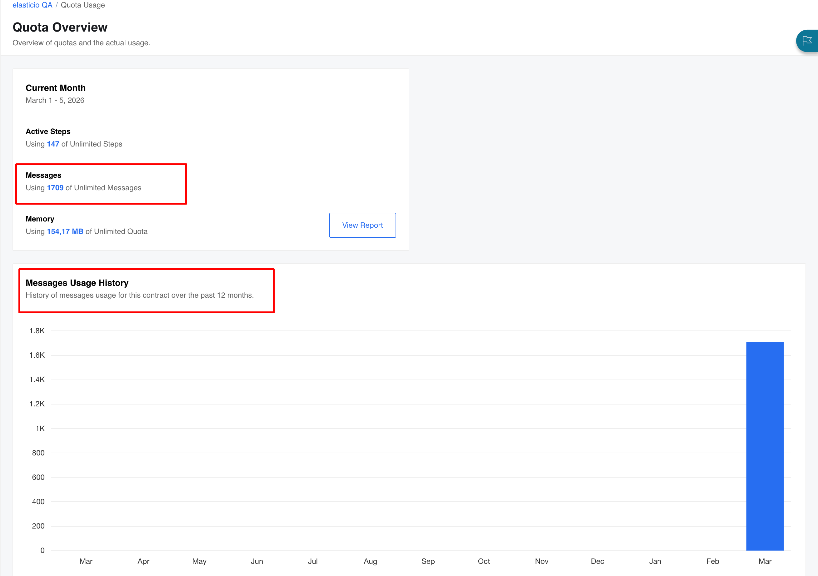 Quota Overview page now includes a widget that displays emitted messages count usage and updated explanatory text. The widget makes it easy to see monthly usage and current quota utilization at a glance.