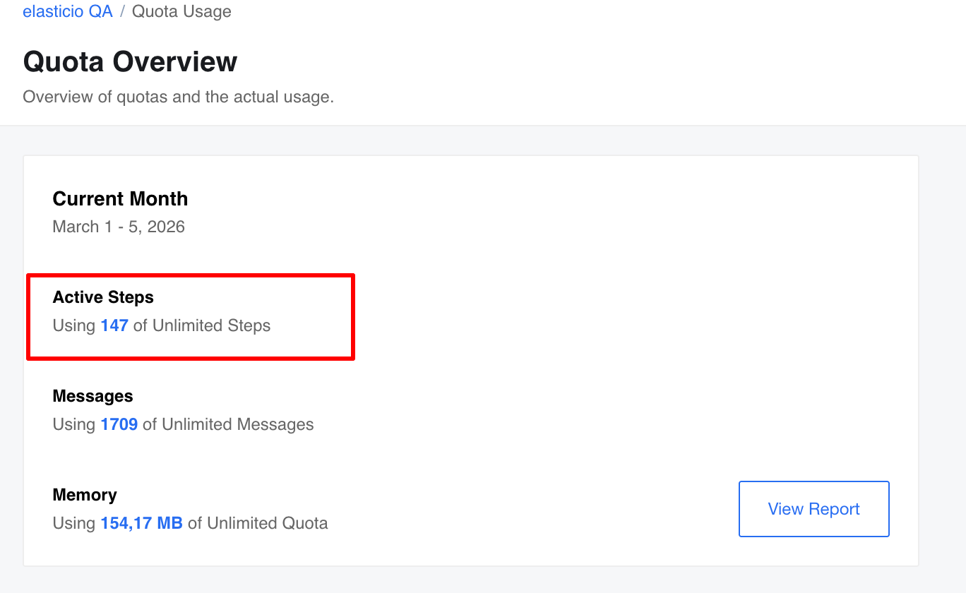 Note: When the quota is exceeded, all flows in the contract will be suspended. They can be resumed by Elastic.io Support upon a request to increase the resource limit.